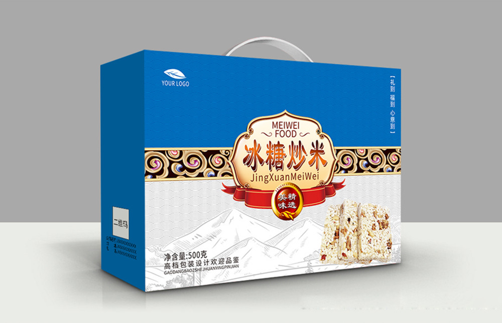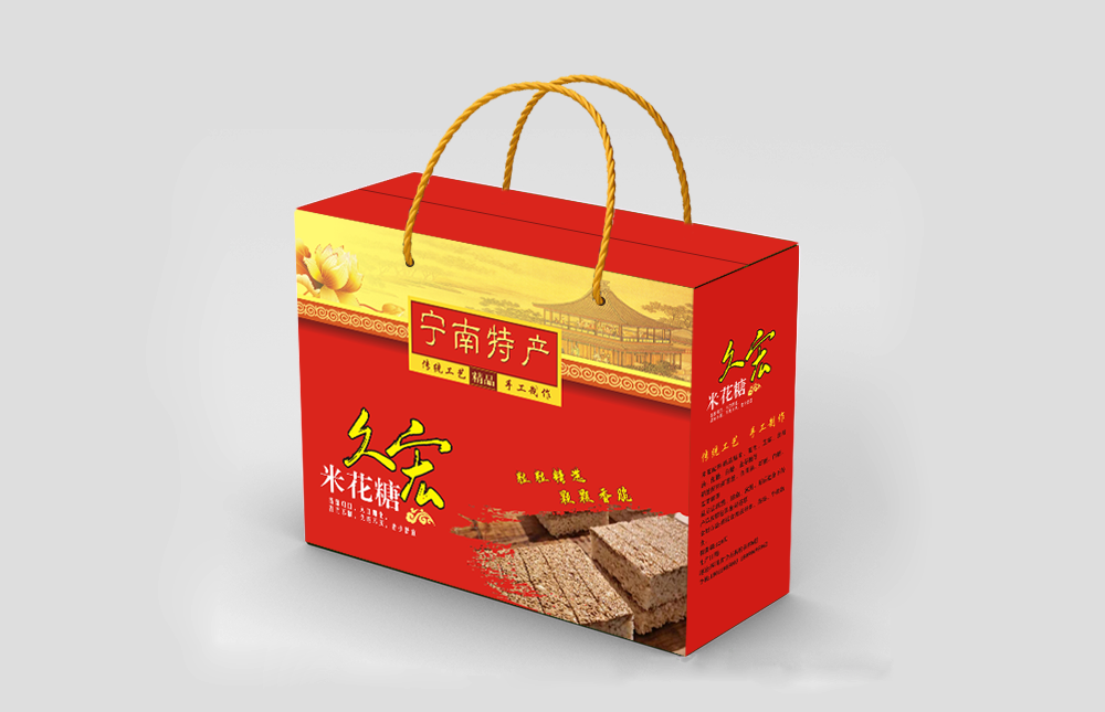 米花糖包裝定制材質:白卡紙、瓦楞紙、繩子