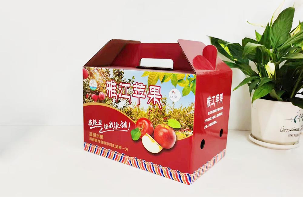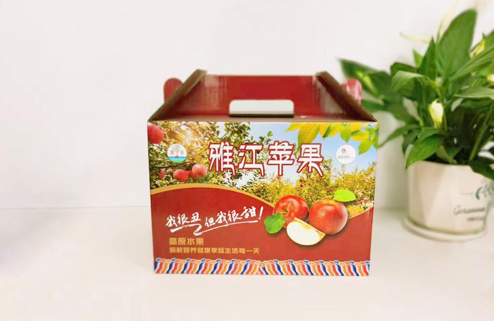 隨著近些年來農產品的發展,我國農產品資源日漸豐富,對人們的生活質量有了極大的提升。優秀的農產品包裝對于本土農產品的銷售與推廣十分重要,在“文創+農業”的背景下,農產品朝著更加本土化、品牌化的方向發展。下圖是農產品之水果包裝——手提蘋果包裝盒