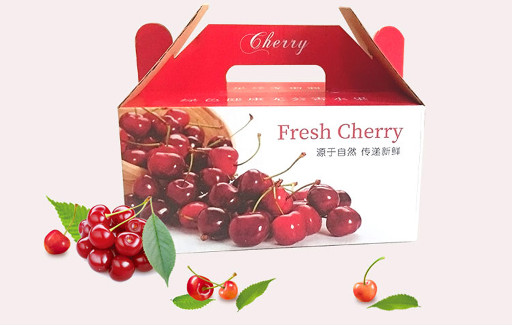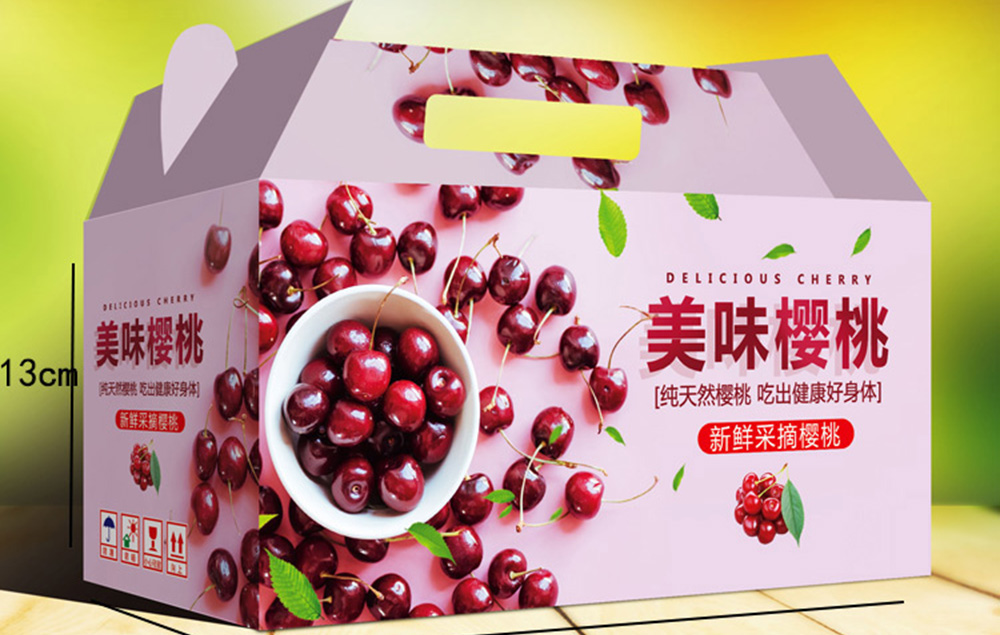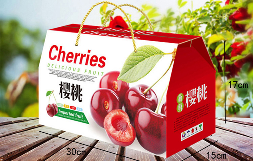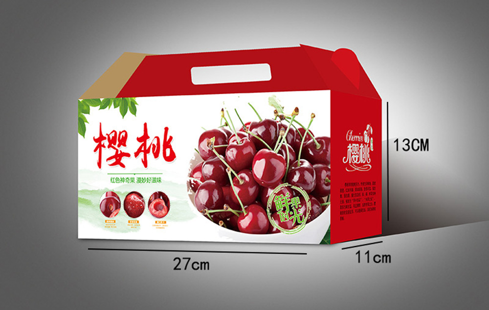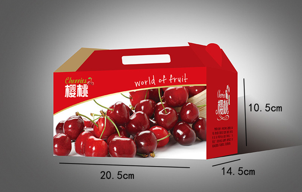 車厘子又名大櫻桃,相比于櫻桃而言,車厘子肉厚汁多,且耐存儲。在車厘子中,尤以汶川、茂縣、理縣這三個地方盛產的車厘子而聞名,因為這三個地方的自然環境、氣候、空氣濕度、陽光的日照時間是最適合車厘子生長的。我公司專業為廣大車厘子種植合作社及廣大批發商定制各類樣式的車厘子包裝盒,如下面這款: