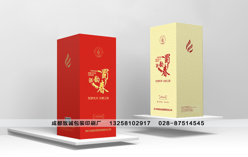 設計理念:本款白酒包裝盒主要是打造一款濃香型川酒品牌。包裝盒分為黃色和紅色兩款,兩款分別以黃色和紅色作為背景主色調,并嵌入防偽底紋,謹防仿冒此酒品牌。