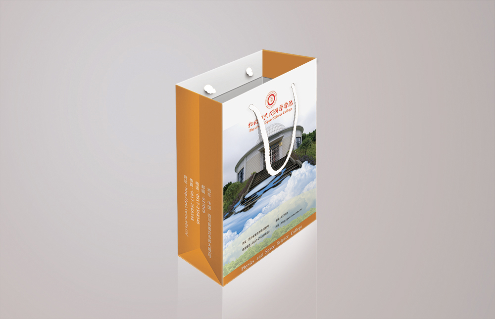 產(chǎn)品工藝:手提袋封面采用白卡紙彩色印刷,覆亮膜、模切、粘袋、穿繩。