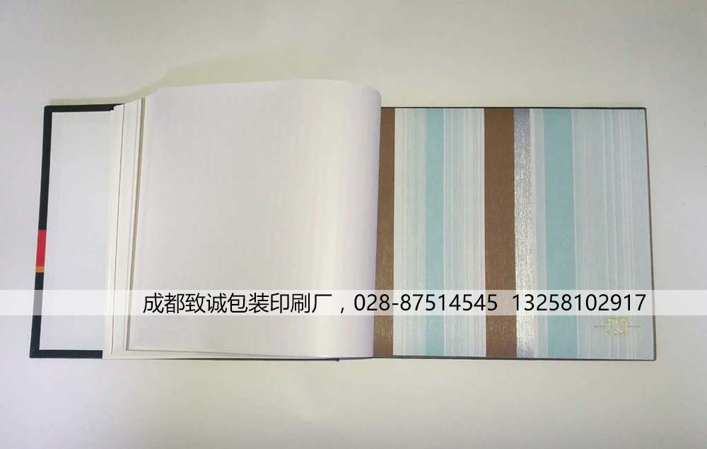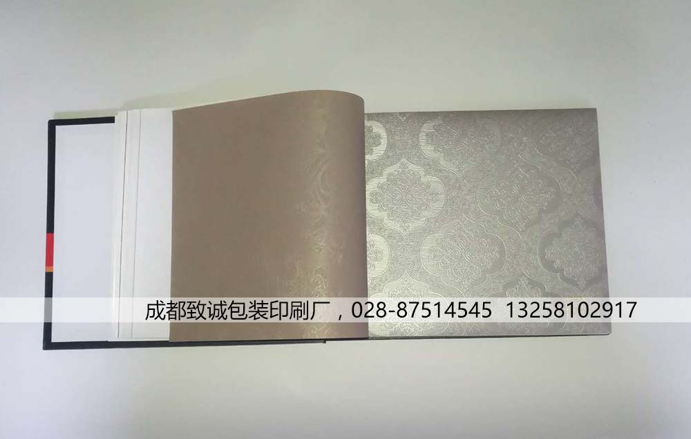 產品材質:封面3.0工業紙板,內頁157g銅版,墻布樣品為客戶自行提供